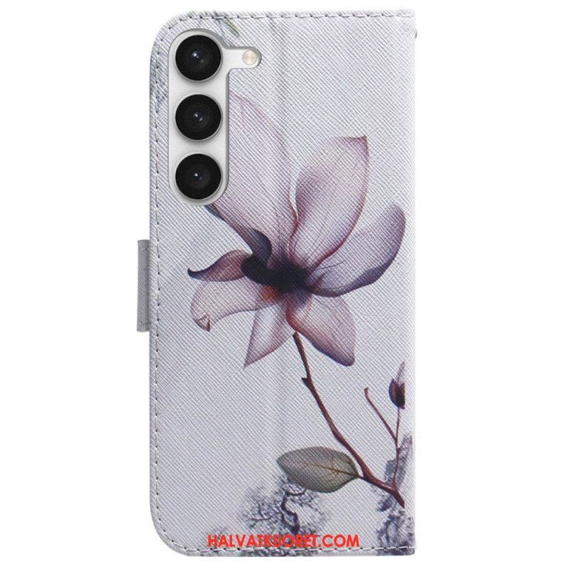 Flip Case Samsung Galaxy S23 5G Vaaleanpunainen Kukka