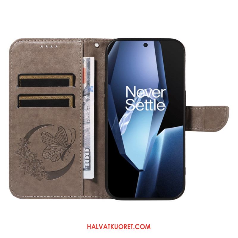 Kotelot Oneplus 13r Perhoskuvioinen Hihnalompakko Suojakuori