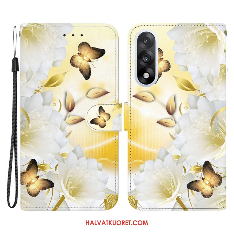 Kotelot Oneplus Nord 5 Puhelinkuoret Kultaisia Perhosia Ja Valkoisia Kukkia