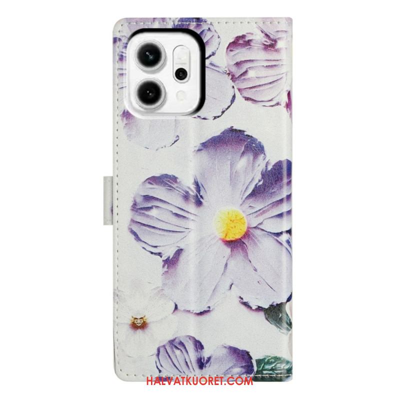 Nahkakotelo Oppo Reno 14 5g Kukkakuvio Hihnalla