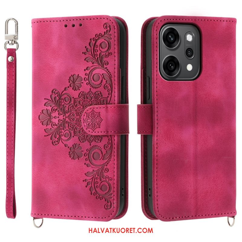 Kotelot Oppo Reno 14 Pro 5g Pitsimokkanahkaefekti Hihnalla Ja Olkahihnalla