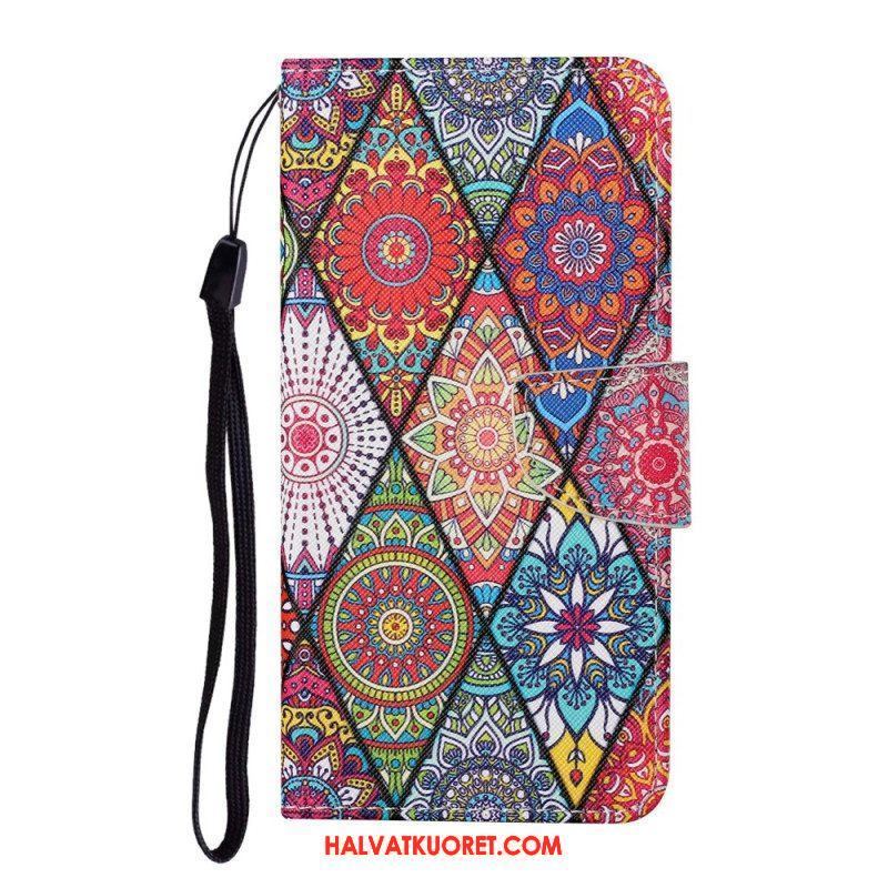 Nahkakotelo Samsung Galaxy A54 5G Suojaketju Kuori Strappy Mandala Print