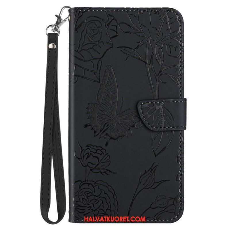 Kotelot Samsung Galaxy M23 5G Hienovaraiset Perhoset Ja Kaulanauha
