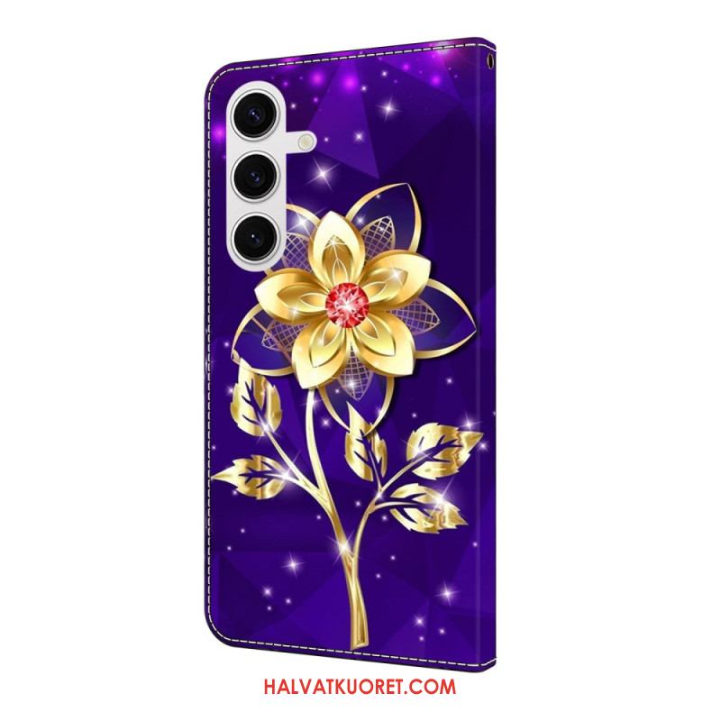 Kotelot Samsung Galaxy S25 Fe Kultaisia Kukkia Violetilla Taustalla Suojakuori