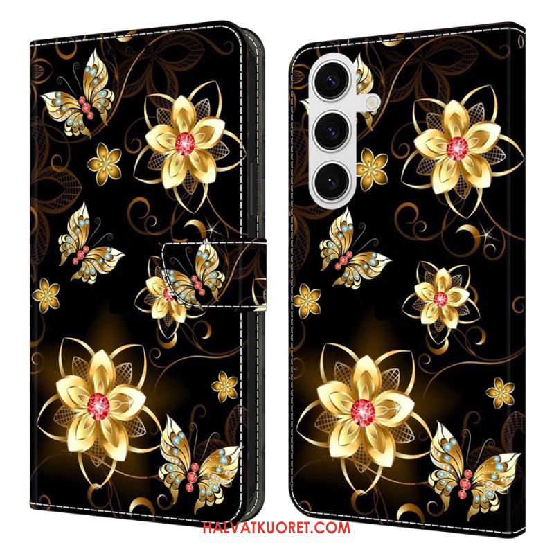 Kotelot Samsung Galaxy S26 Plus Puhelinkuoret Kultaisia Kukkia Ja Perhosia