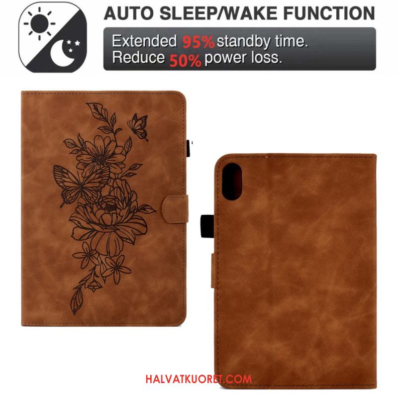 Kotelot Samsung Galaxy Tab S11 Mokkanahkainen Kukka- Ja Perhoskuvio