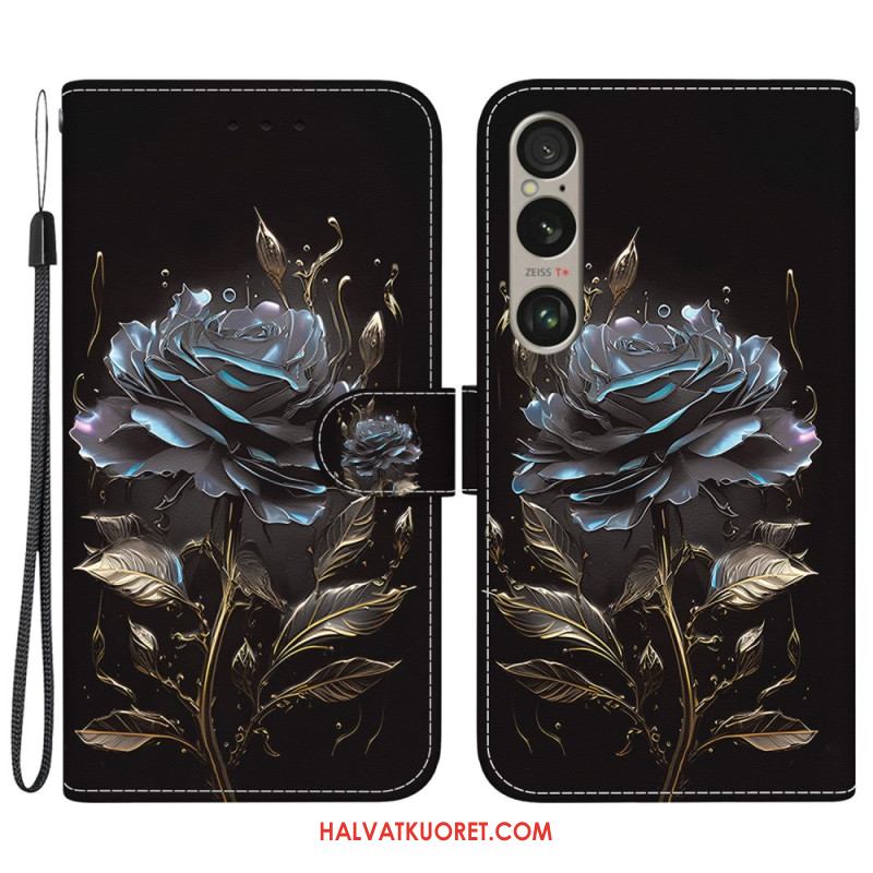 Kotelot Sony Xperia 1 Vi Musta Ruusu Hihnalla Suojakuori