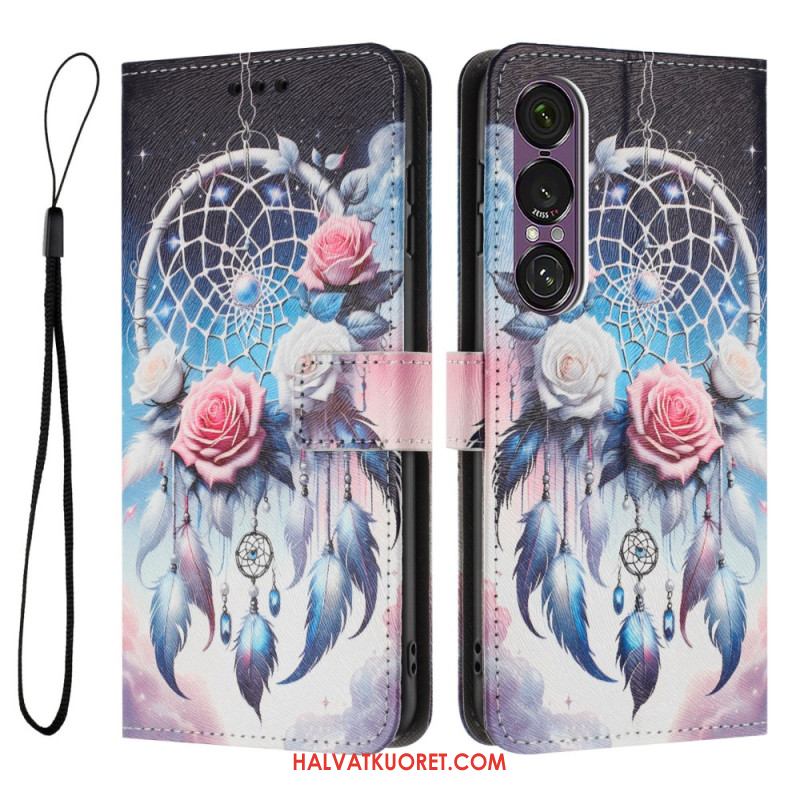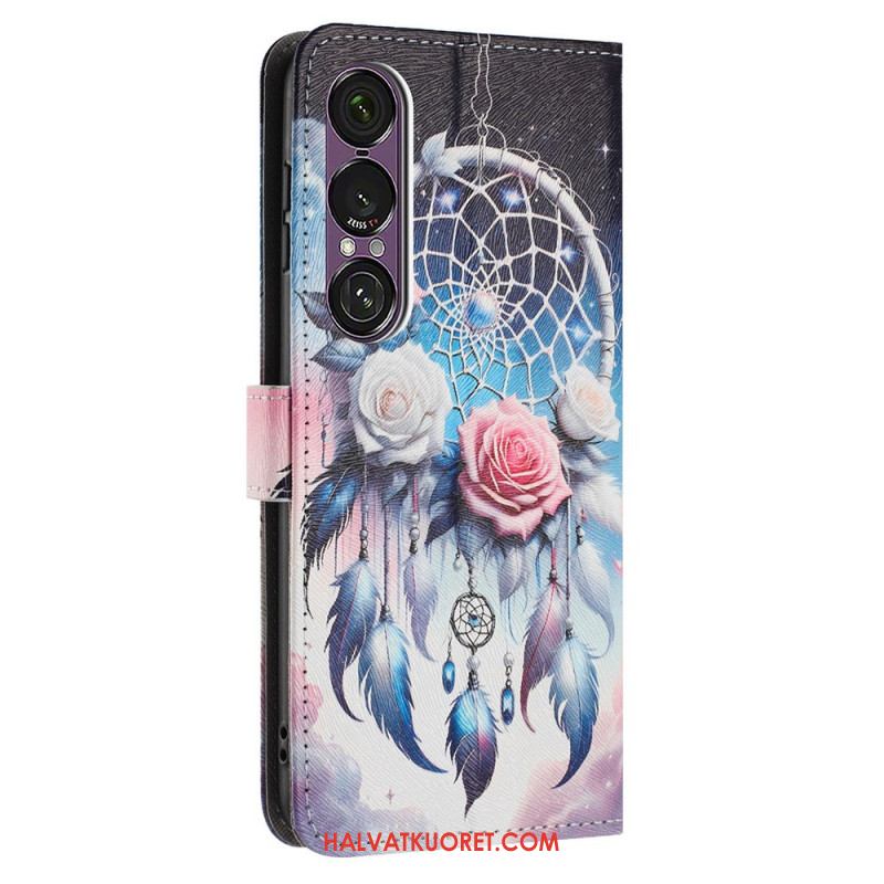 Nahkakotelo Sony Xperia 1 Vii Violetit Ruusut