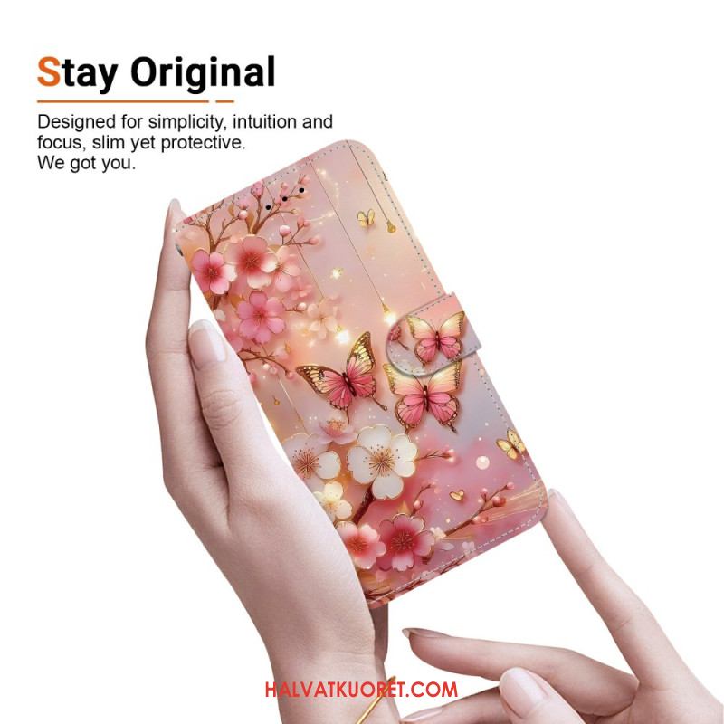 Kotelot Sony Xperia 10 Vii Vaaleanpunaisia Perhosia