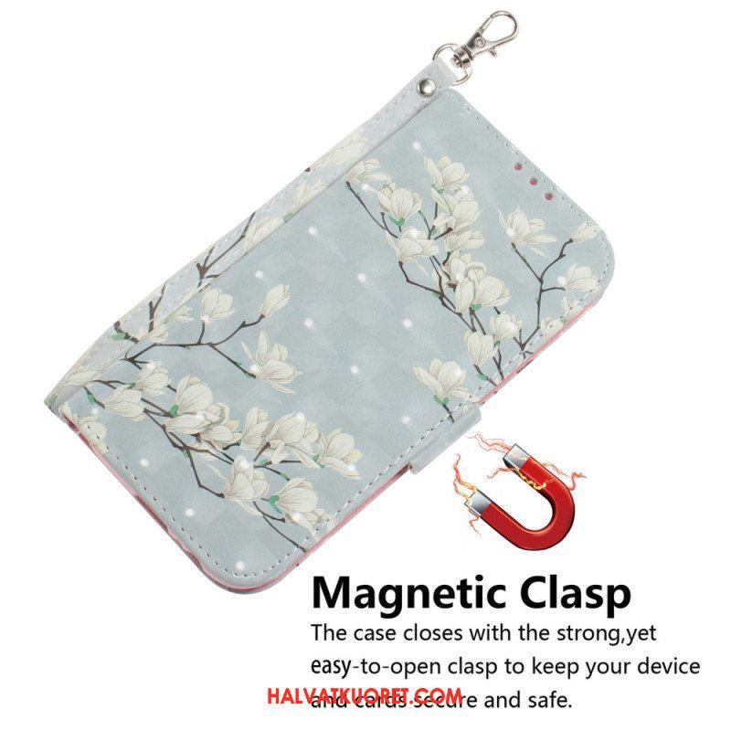 Kotelot Xiaomi Redmi Note 12 5G Suojaketju Kuori Strappy Valkoiset Kukat
