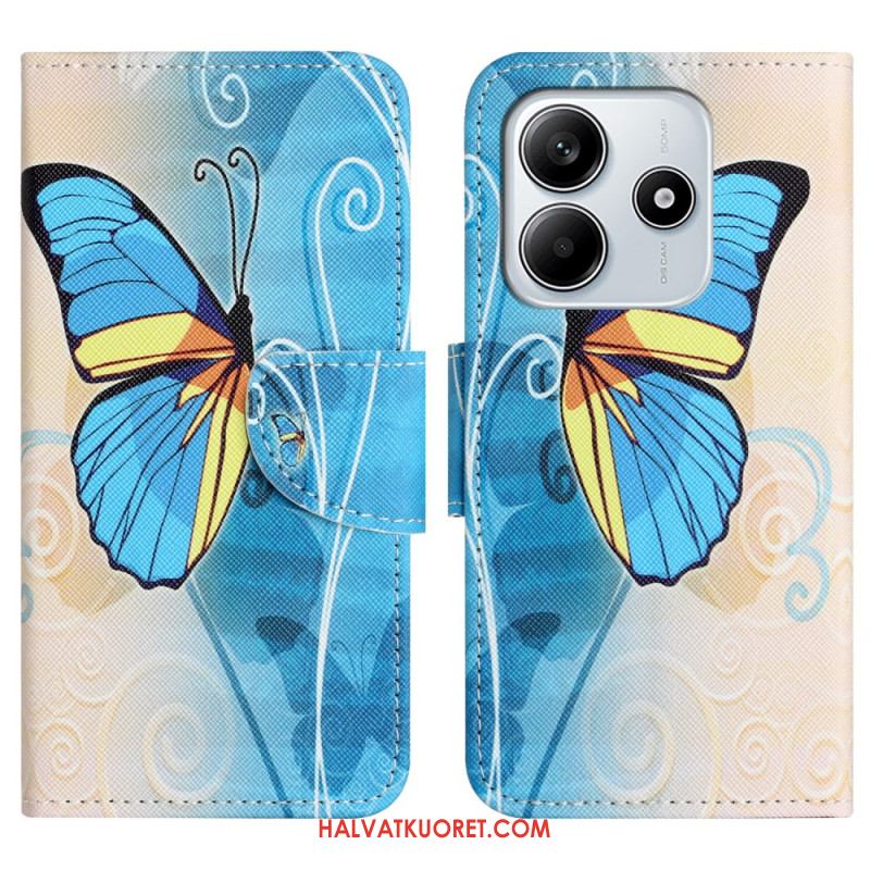 Kotelot Xiaomi Redmi Note 14 4g Sininen Perhonen Ja Kukkia