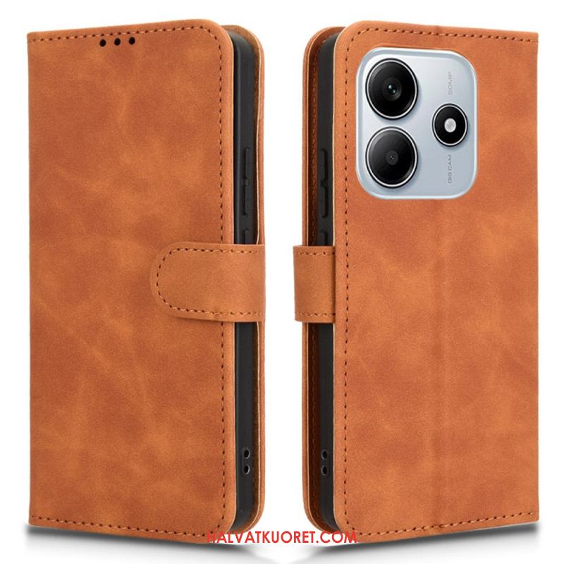 Nahkakotelo Xiaomi Redmi Note 14 4g Ykatu Ruskea Mokkanahkakuvio Suojakuori