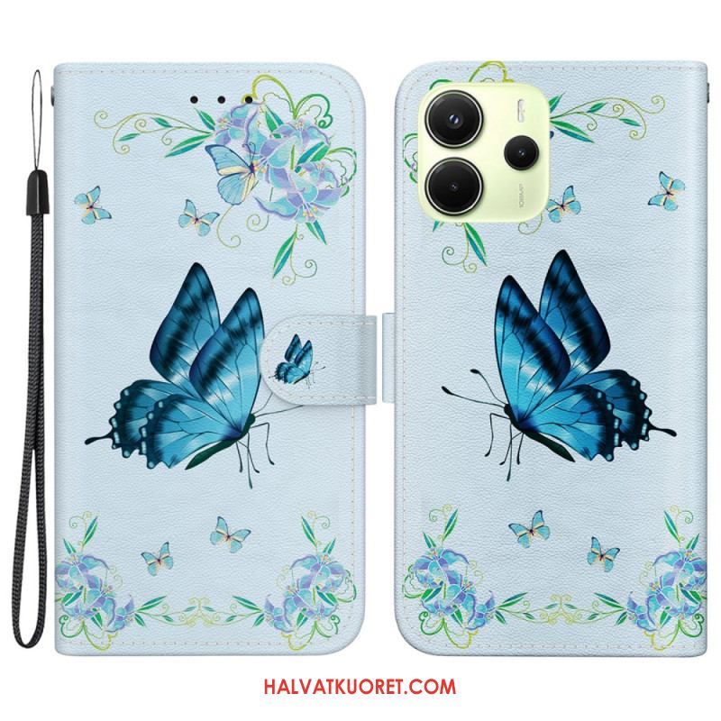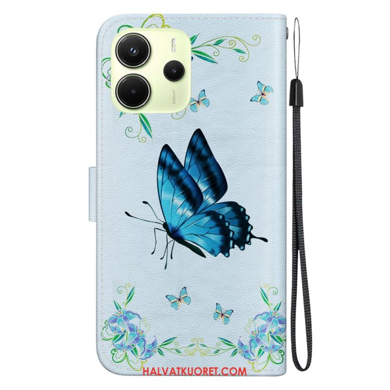 Kotelot Xiaomi Redmi Note 14 4g Sininen Perhonen Ja Kukkia