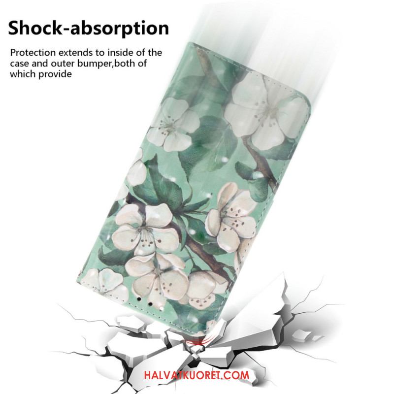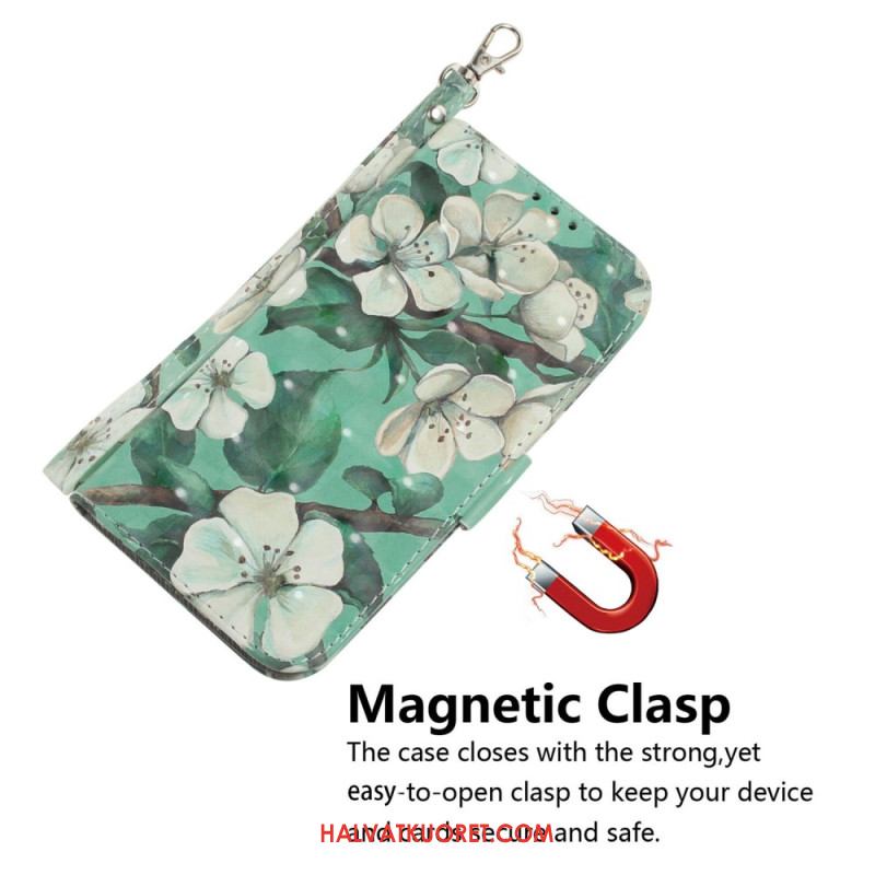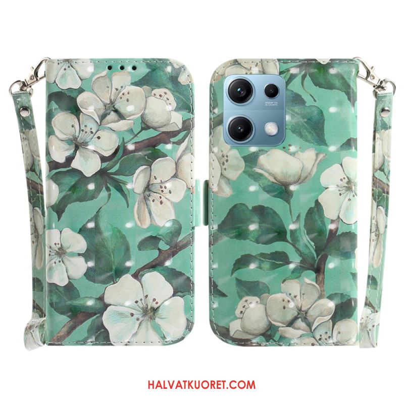 Kotelot Xiaomi Redmi Note 14s Valkoiset Kukat Ja Nauha