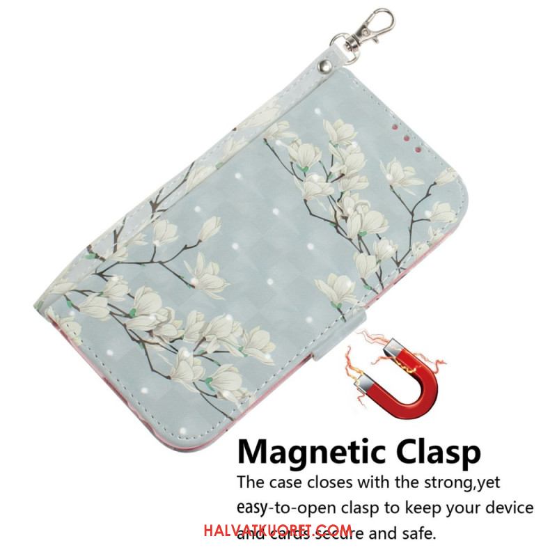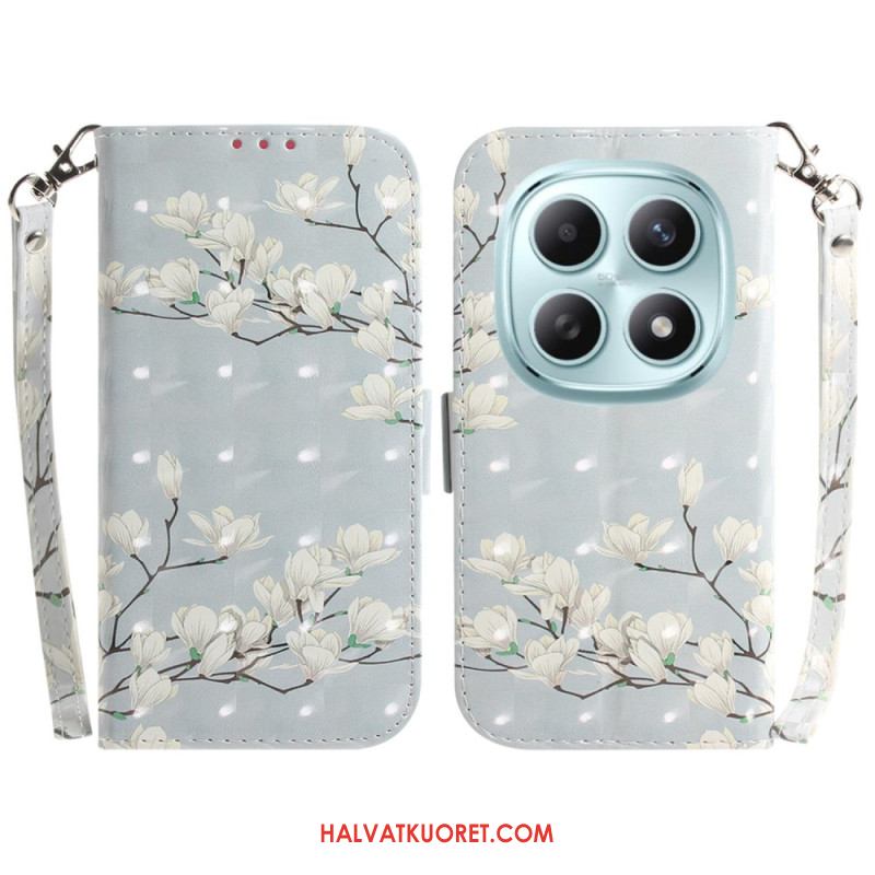Kotelot Xiaomi Redmi Note 15 5g Valkoiset Magnoliat Ja Nauha Suojakuori
