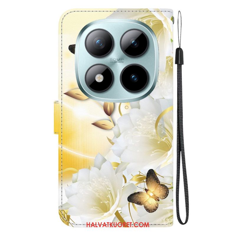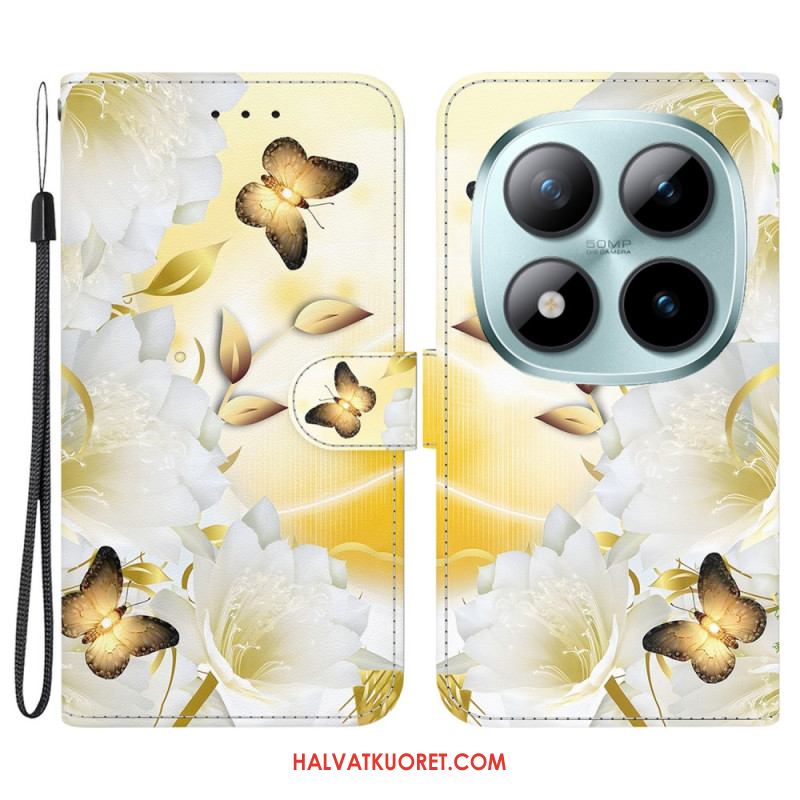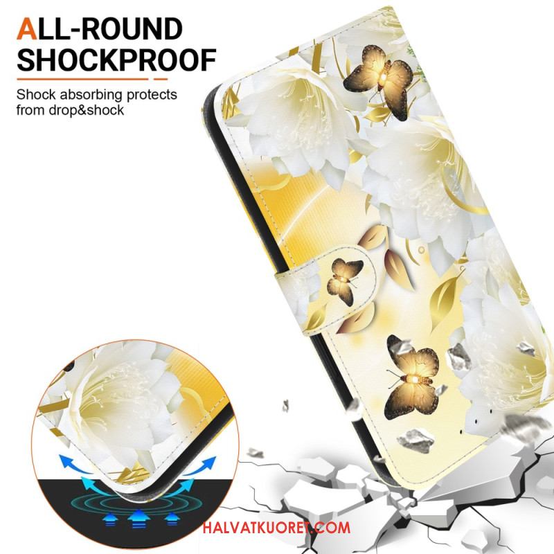 Kotelot Xiaomi Redmi Note 15 Pro 5g Kultaisia Perhosia Ja Valkoisia Kukkia