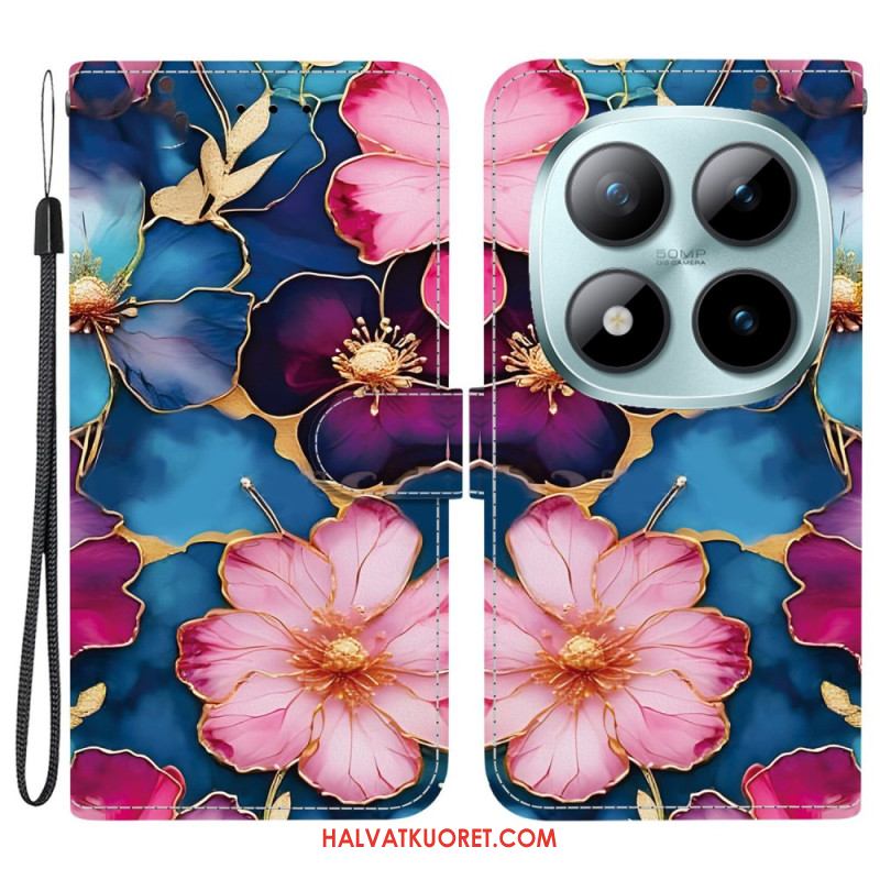 Kotelot Xiaomi Redmi Note 15 Pro 5g Siniset Ja Kultaiset Kukat