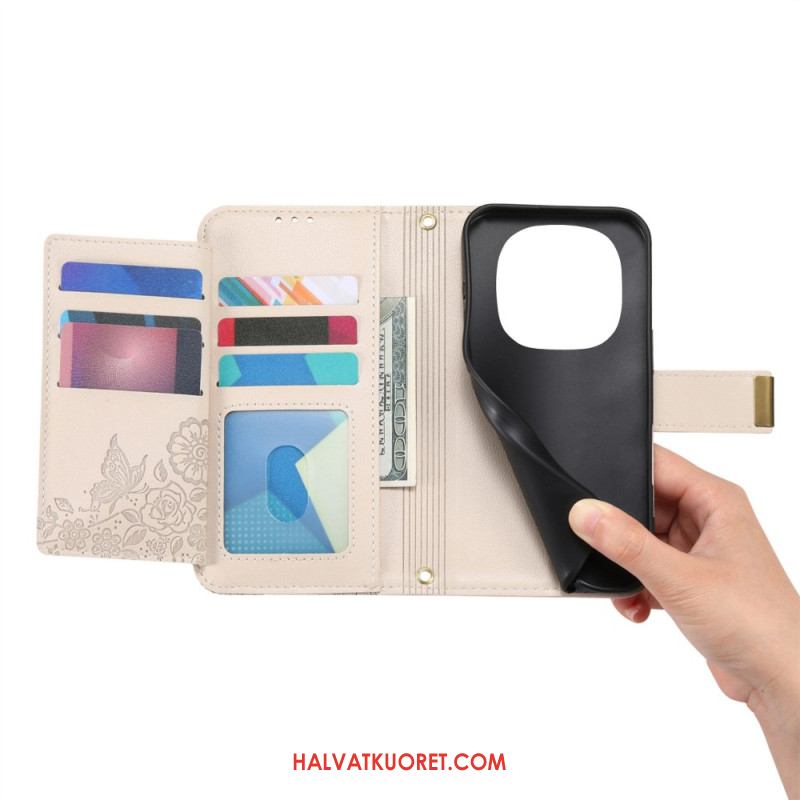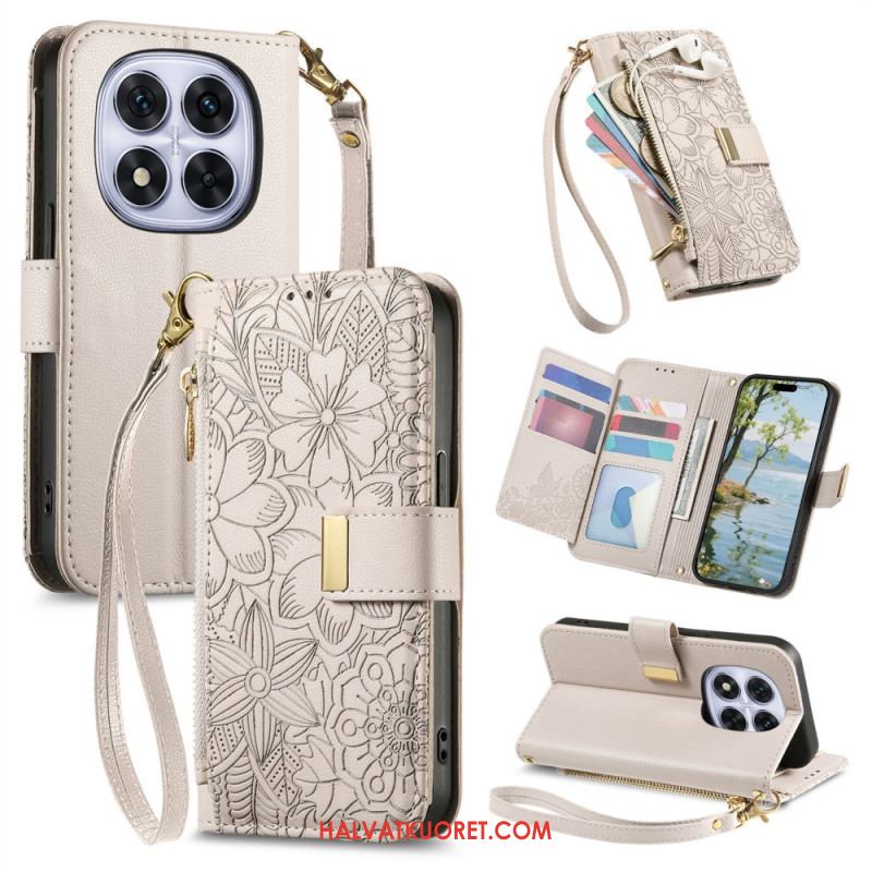 Kotelot Xiaomi Redmi Note 15 Pro Plus 5g Puhelinkuoret Kukkakuvio Ja Vetoketjullinen Tasku