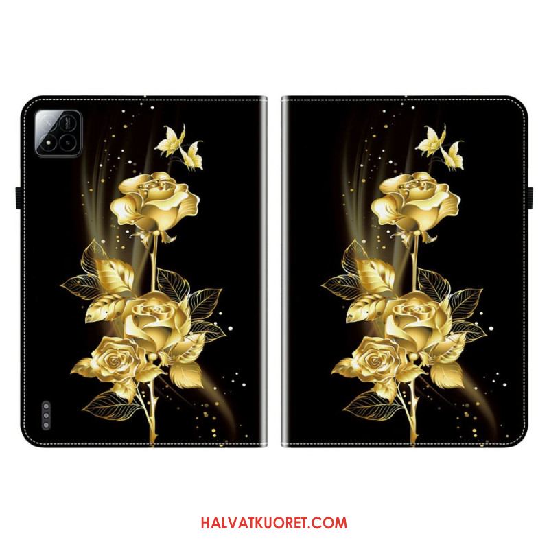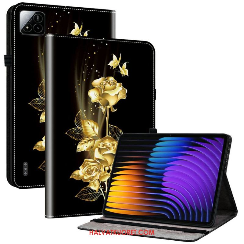 Kuoret Xiaomi Pad 7 / 7 Pro Kultaisia Ruusuja Ja Perhosia