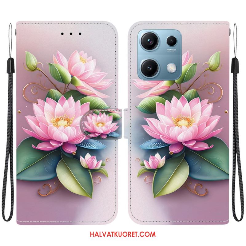 Nahkakotelo Xiaomi Redmi Note 14s Ruutukuvio Ja Hihna Suojakuori
