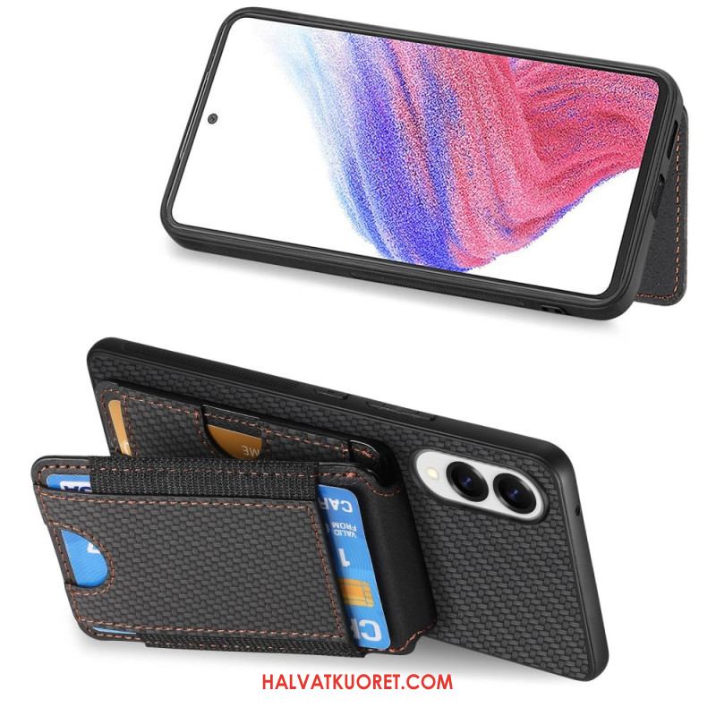 Kuori Samsung Galaxy S25 5g Edge Hiilikuitutekstuurilla Varustettu Korttikotelo Ja Integroitu Jalusta