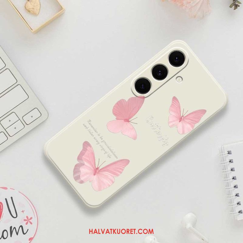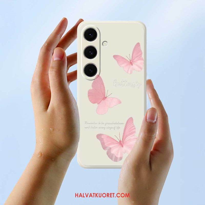 Kuori Samsung Galaxy S25 Fe Vaaleanpunainen Perhos-silikoni Suojakuori