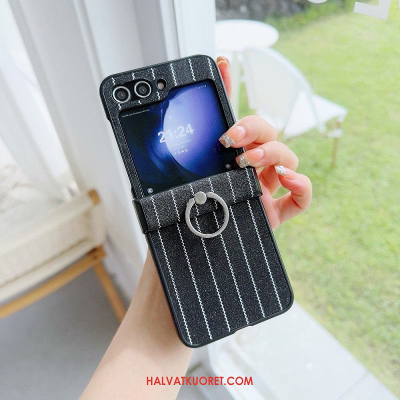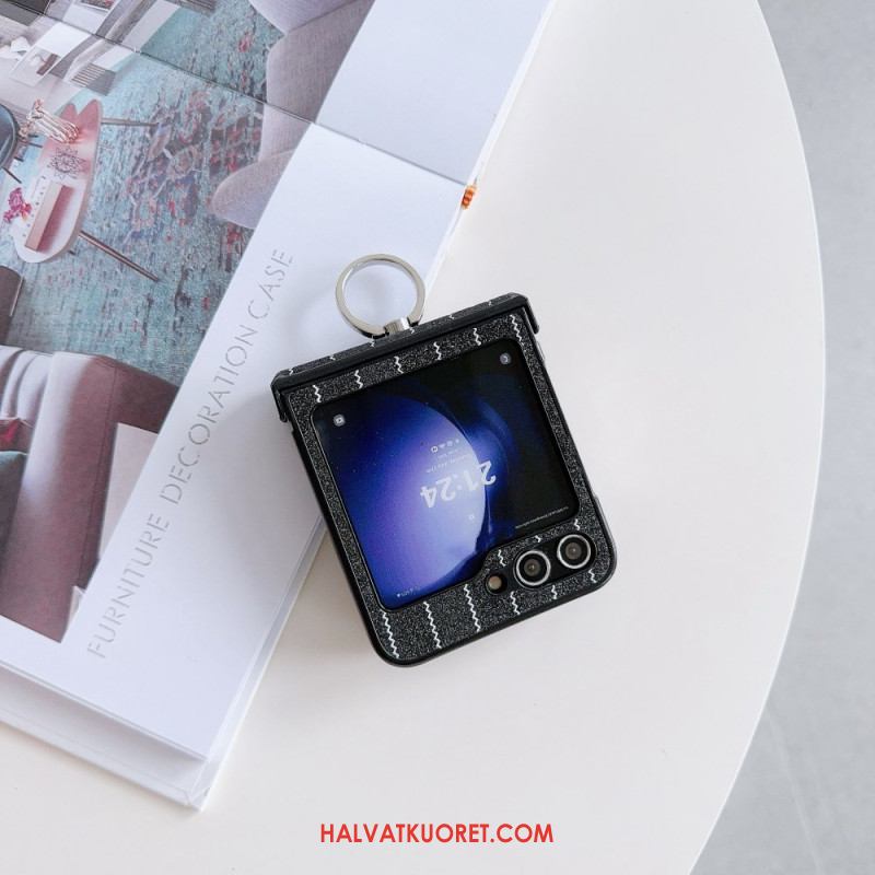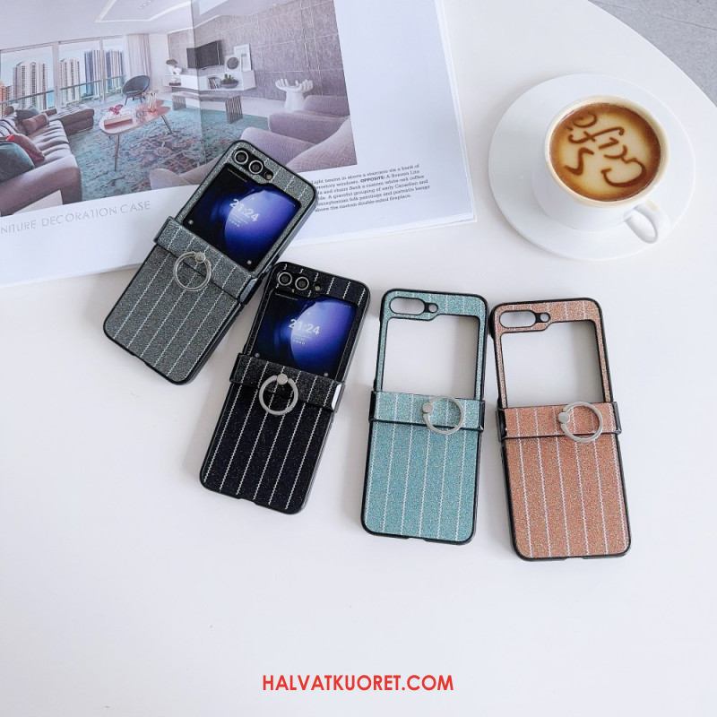 Kuori Samsung Galaxy Z Flip 7 Fe Mokkanahkaefekti Pyörivällä Jalustalla