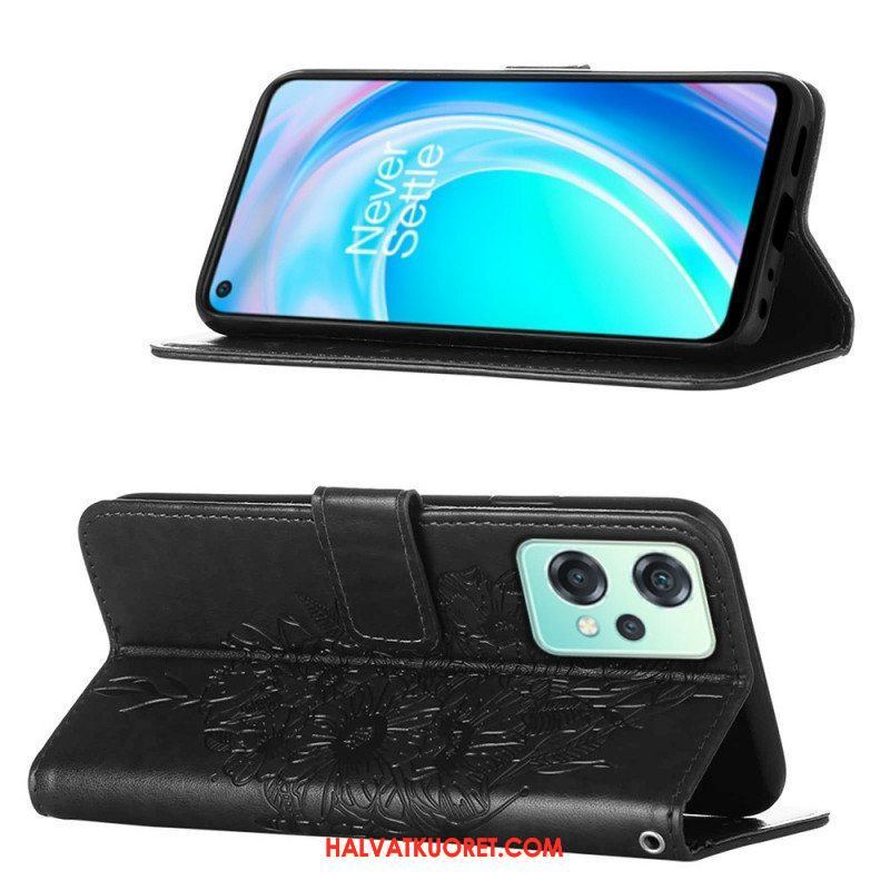 Nahkakotelo OnePlus Nord CE 2 Lite 5G Suojaketju Kuori Taiteellinen Perhonen Hihnalla