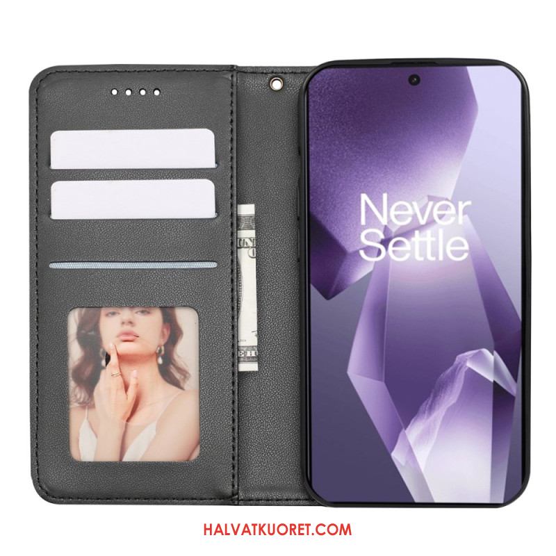 Nahkakotelo Oneplus 13r Tuplakorttikotelollinen Hihnalompakko