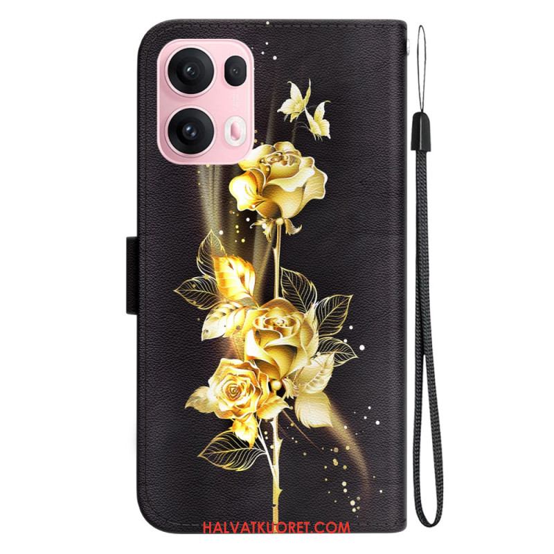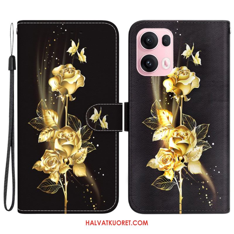 Nahkakotelo Oppo Reno 13 Pro 5g Kultaisia Ja Vaaleanpunaisia Perhosia