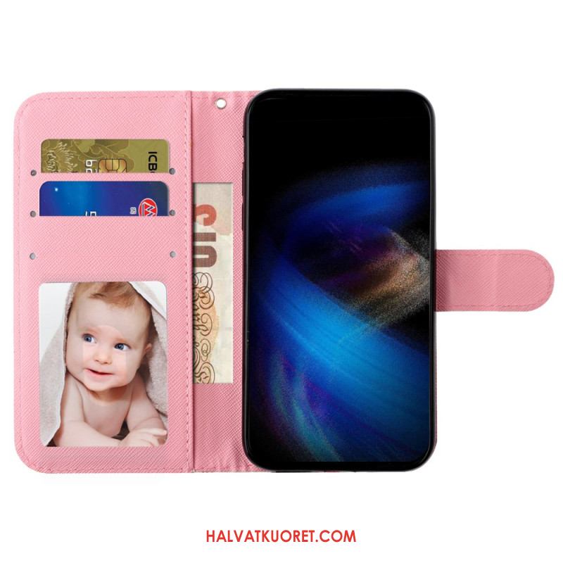 Nahkakotelo Samsung Galaxy S25 Fe Ruusut Ja Nauha