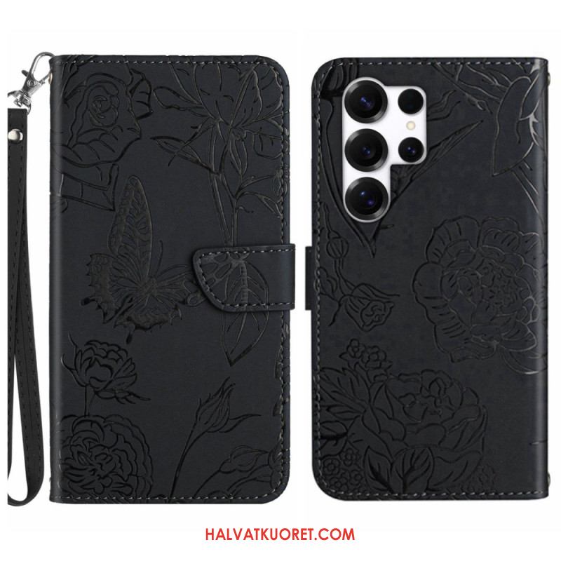 Nahkakotelo Samsung Galaxy S26 Ultra Perhoskuvioinen Ranneke