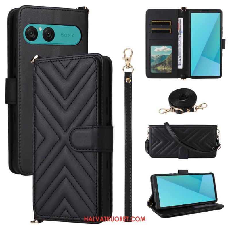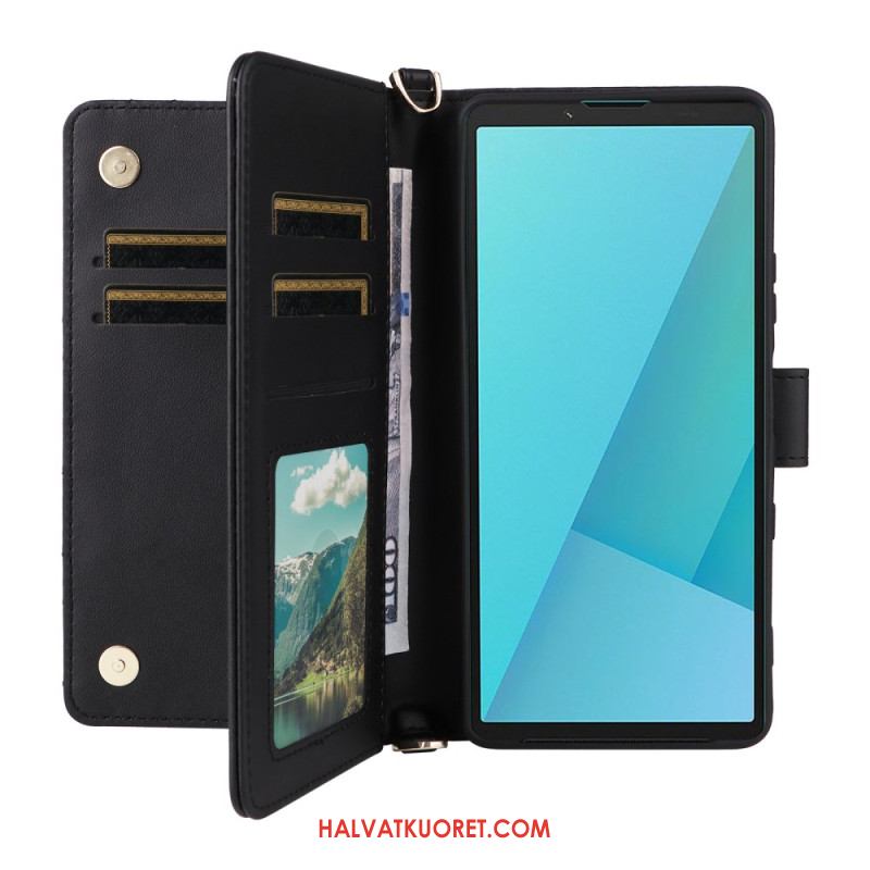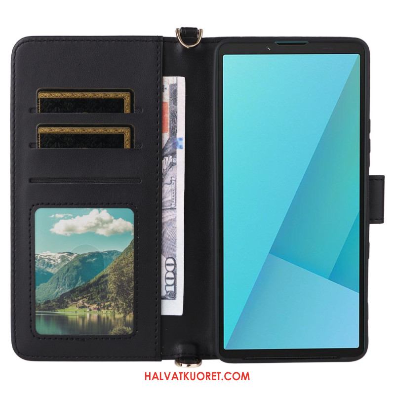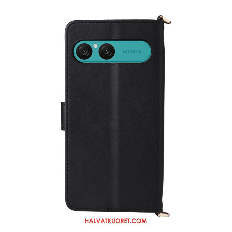 Nahkakotelo Sony Xperia 10 Vii Tikattu Hihna Ja Rannehihna