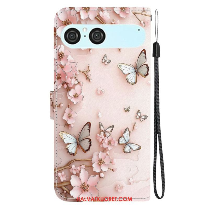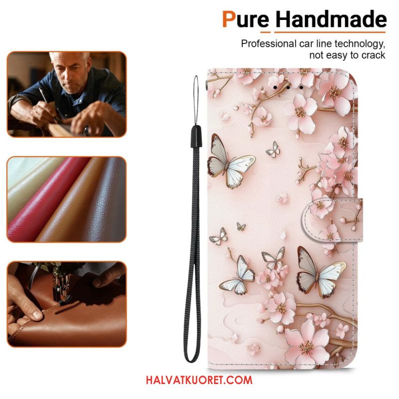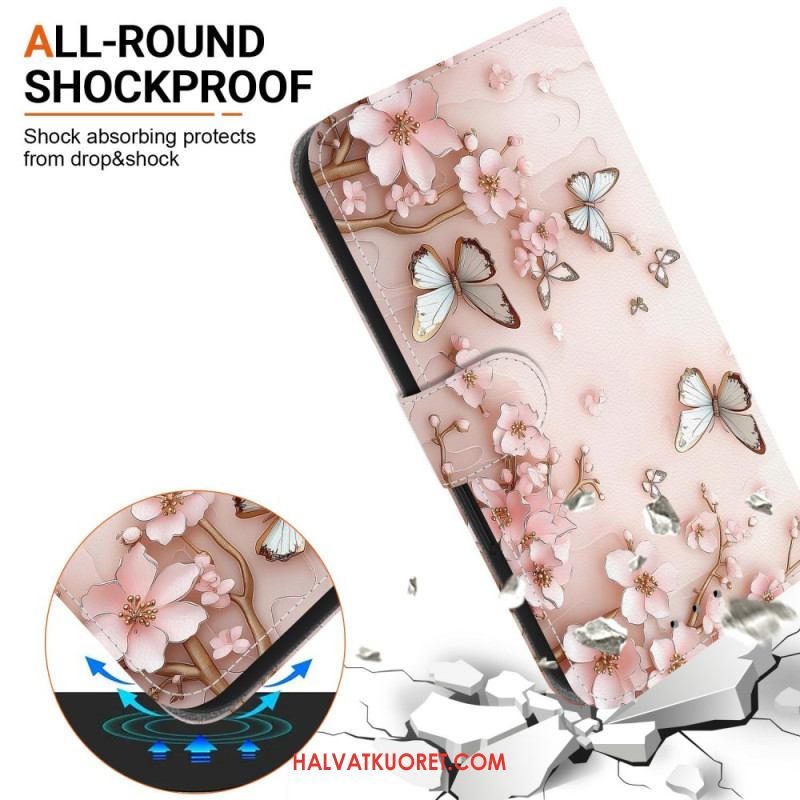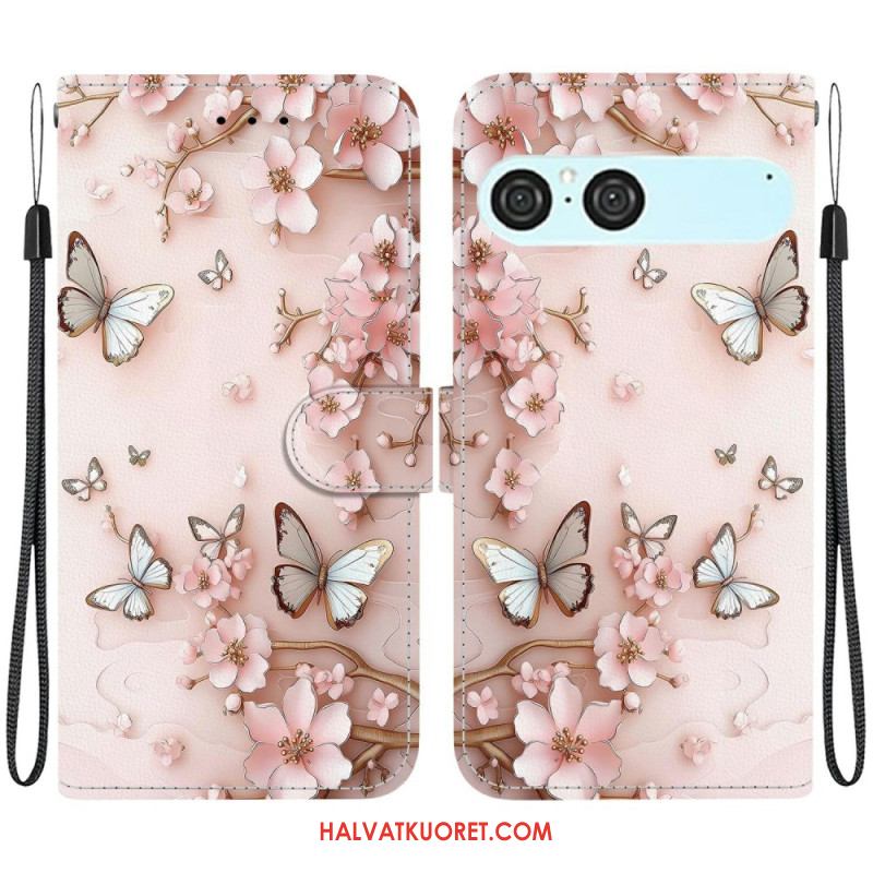 Nahkakotelo Sony Xperia 10 Vii Vaaleanpunaisia Perhosia