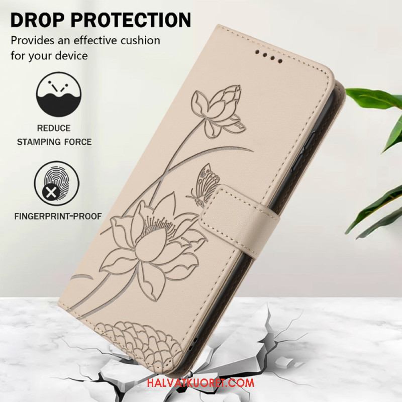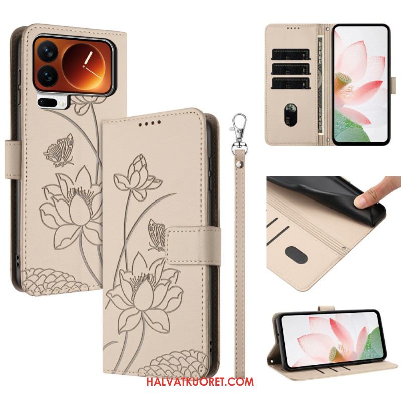 Nahkakotelo Xiaomi 17 Pro Lootuskuvio Ja Nauha