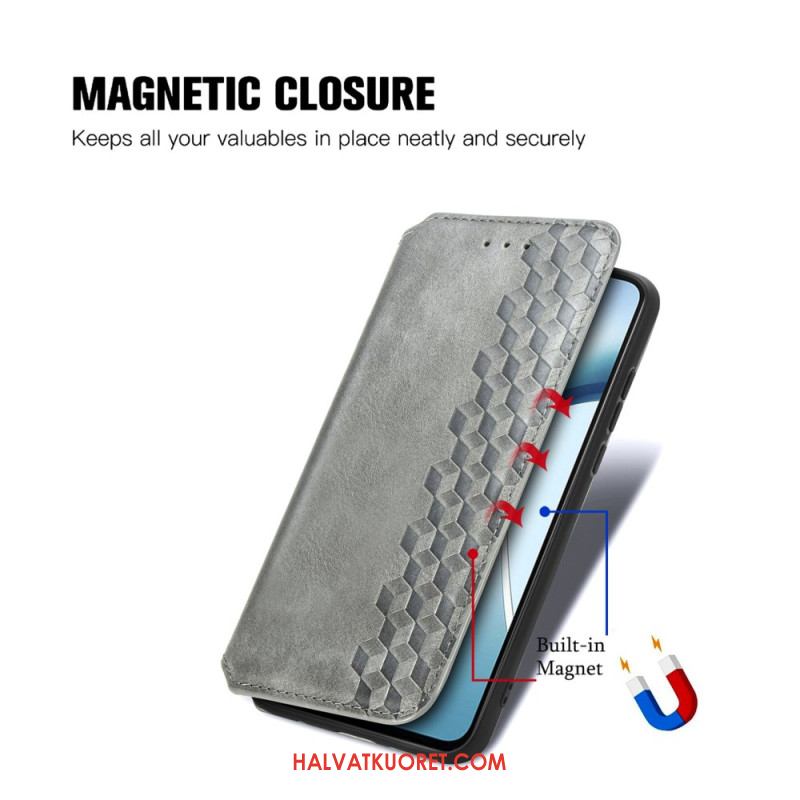 Nahkakotelo Xiaomi Redmi Note 14 4g Vintage-nahkakuvio Timanttikuviolla