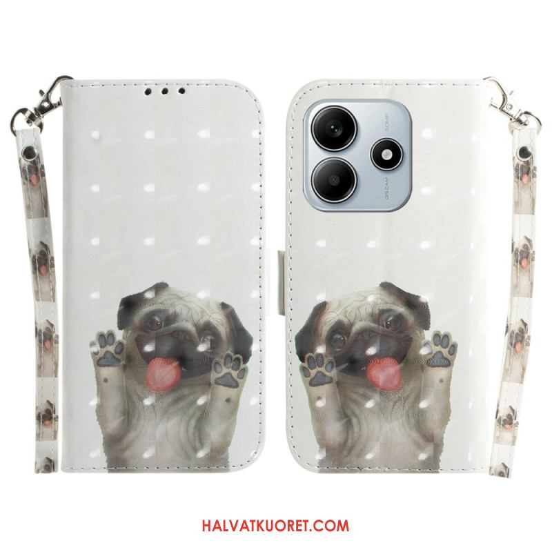 Nahkakotelo Xiaomi Redmi Note 14 5g Mopsikuvioinen Kaulanauha