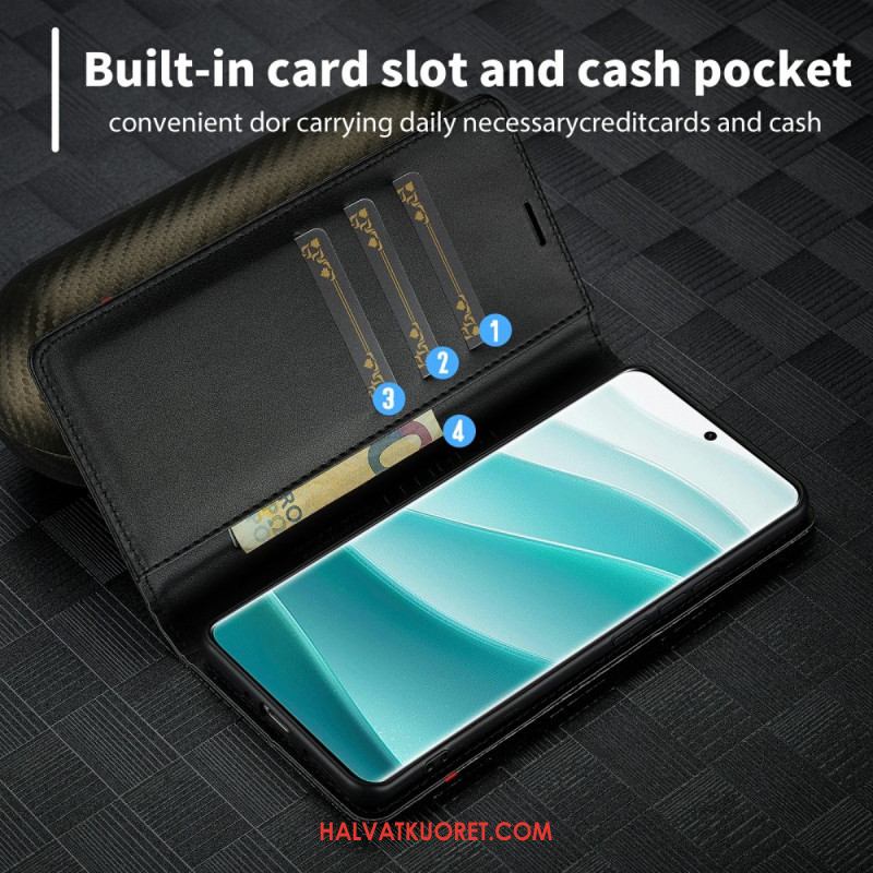 Nahkakotelo Xiaomi Redmi Note 14 Pro 4g Hiilikuitutekstuuri