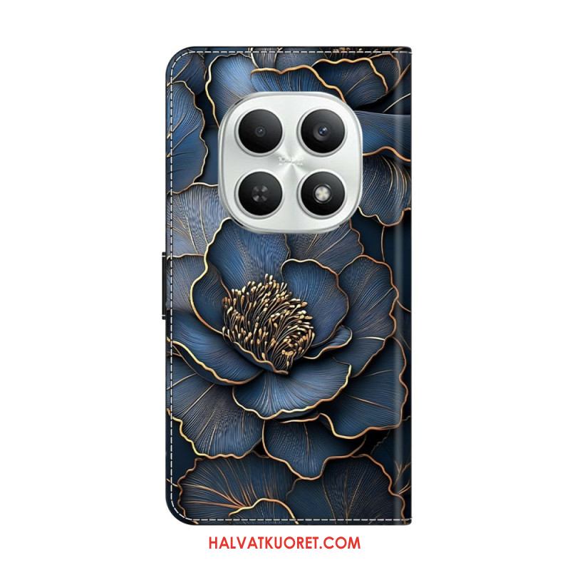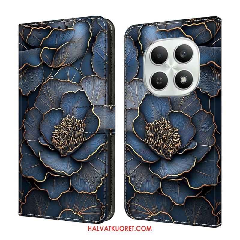 Nahkakotelo Xiaomi Redmi Note 15 5g Sininen Ja Kultainen Pioni