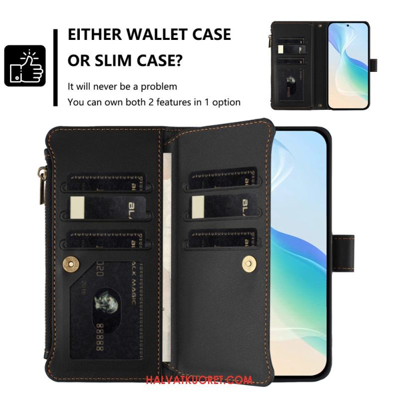 Nahkakotelo iPhone 17 Pro 9 Kortin Lokeron Lompakko Ja Nauha