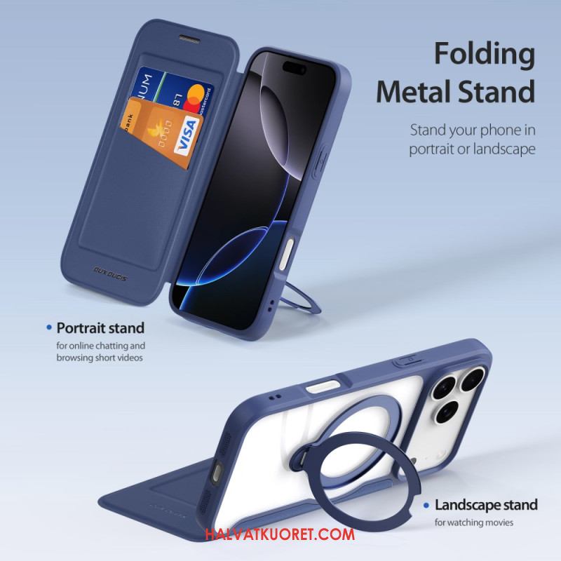 Nahkakotelo iPhone 17 Pro Puhelinkuoret Skin X Pro -sarja Dux Ducis -jalustalla
