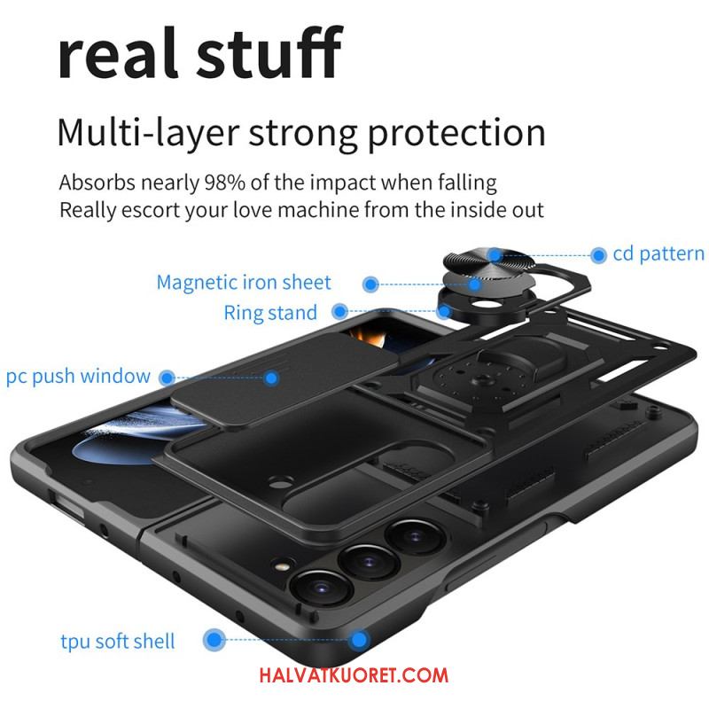 Puhelinkuoret Samsung Galaxy Z Fold 7 Sormuspidike Ja Liukuva Kameransuoja